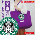 実用性ある傘寿祝いです。紫のバッグにコーヒー好きな方におすすめなデザインを施しております。