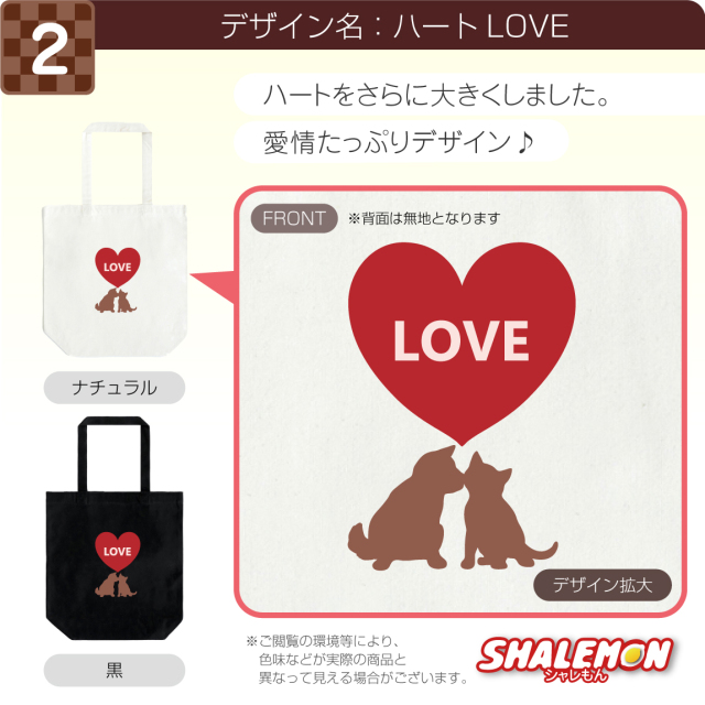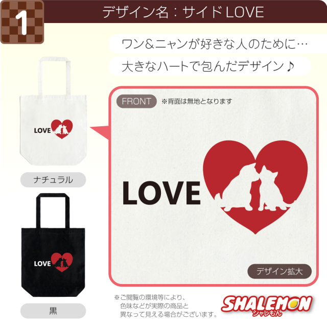 デザインで選ぶ→だものシリーズおもしろゲーム好き猫・犬・ペット浮気防止スポーツ系名入れ可能お祝いで選ぶ→季節のイベント還暦祝い結婚祝い出産祝い長寿祝い応援・祈願誕生日祝い アイテムで選ぶ Tシャツ パンツ タオル エプロン ふんどし ポロ 犬服 帽子 カップ バッグ お酒 トレーナー シャレもんトップページ Tシャツ シーズンイベント シーズンイベントバレンタインデー シーズンイベントホワイトデー お祝い・記念日で選ぶ 素材で選ぶ 素材で選ぶコットン・綿 アニマル・ペット アニマル・ペット犬 アニマル・ペット猫 トート 猫グッズ 犬グッズ レディース 【 選べる デザイン 2色 CAT&DOG トートバッグ M 】 A4 a4 プレゼント 犬 猫 かわいい 可愛い いぬ ねこ わんこ にゃんこ 犬好き 猫好き 彼女 バレンタイン ホワイトデー 大容量 軽量 大きめ エコバッグ ギフト 男性 女性 シャレもん 価格: ¥1,980 (税込) [ポイント還元 19ポイント~] 販売期間: デザイン選択: 選択してください 【 サイドLOVE 】 【 ハートLOVE 】 数量: 枚 カラーサイズ在庫購入ナチュラルトートバッグM○ 黒トートバッグM○ カラーサイズ在庫購入ナチュラルトートバッグM○ 黒トートバッグM○ 返品についての詳細はこちら レビューはありません ワンコとニャンコがデザインされたかわいいデザイン。 バレンタインのプレゼントにも最適! チョコ好きな方にぴったりのかわいいサイズのトートバッグです。 デザインを選んでご購入くださいね♪ 関連商品 【期間限定チョコパッケージ】 バレンタイン 義理チョコ プレゼント チョコ パンツ ( ボクサーパンツ )( 3Dアート チョコ ) シームレス 板チョコ 彼氏 メンズ おもしろ 雑貨 グッズ プチギフト しゃれもん (syk) ¥1,980(税込) 【期間限定チョコパッケージ】 バレンタイン 義理チョコ チョコレート プチギフト プレゼント パンツ ( ボクサーパンツ )( 本命 義理 ) シームレス 板チョコ 彼氏 メンズ おもしろ 雑貨 グッズ しゃれもん (syk) ¥1,980(税込) 【期間限定チョコパッケージ】 バレンタイン チョコ 名入れ パンツ チョコ以外 ( チョコレート 風 名前入り ボクサーパンツ ) 実用的 プレゼント ギフト 義理 本命 メンズ 男性 女性 子供 下着 おもしろ ばれんたいん 旦那 彼氏 ヴァレンタイン ¥1,990(税込) 【期間限定チョコパッケージ】 バレンタイン 義理チョコ プレゼント ハート チョコ ( ボクサーパンツ )( 白地ハートチョコ ) シームレス 板チョコ ボクサーパンツ プチギフト メンズ おもしろ 雑貨 グッズ しゃれもん (syk) ¥1,980(税込) 名入れ Tシャツ オリジナル プレゼント【チョコ】クリスマス バレンタイン ホワイトデー 長寿 お祝い 結婚祝い 還暦 還暦祝い 男性 女性 誕生日 メッセージ★B5★ ¥2,700(税込) 浮気防止 名入れ おもしろ パンツ 結婚記念日 【 浮気禁止 ○○ 専用 名前入れ ボクサーパンツ 】 カップル 結婚 バレンタイン プレゼント クリスマス ウェディング 旦那さんへ 男性 下着★B6★ ¥1,980(税込) バレンタイン パンツ プレゼント おもしろ 男女兼用 パンツ ( ボクサーパンツ )( 選べるデザイン チョコ風 フリーサイズ ) 義理チョコ 名入れ バレンタインチョコ プチギフト しゃれもん(3BY) ¥2,140(税込) バレンタイン 名入れ おもしろ プレゼント 【選べる5カラー チョコ キーホルダー 】義理チョコ 名入れ プレゼント バレンタインチョコ プチギフト ¥1,782(税込) 名入れ タオル 【選べるカラー チョコ風 タオル】【サイド】バレンタイン ホワイトデー フェイスタオル フェイスタオル 誕生日 クリスマス ギフト 出産祝い しゃれもん(4BY) ¥1,980(税込)