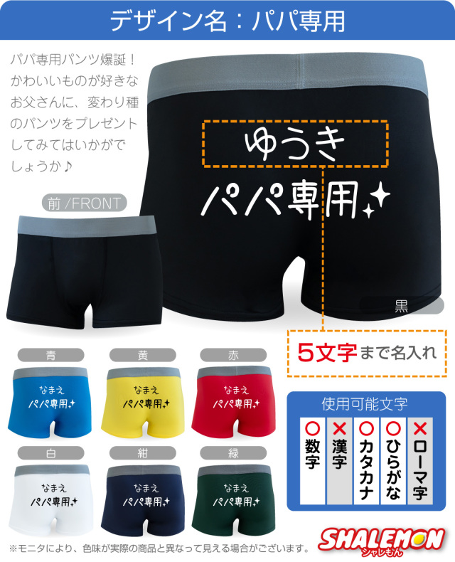 | 製品名: | 父の日 ギフト プレゼント おもしろ ( ボクサーパンツ 名入れ 選べる 父の日 デザイン ) |