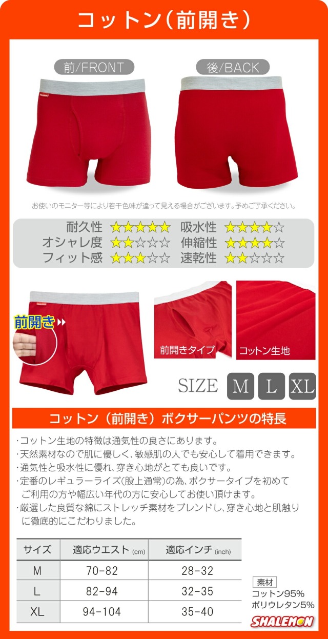 綿100%の通気性がよく履き心地の良いボクサーパンツ。