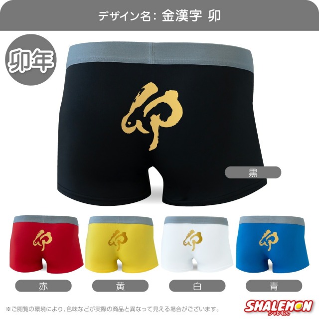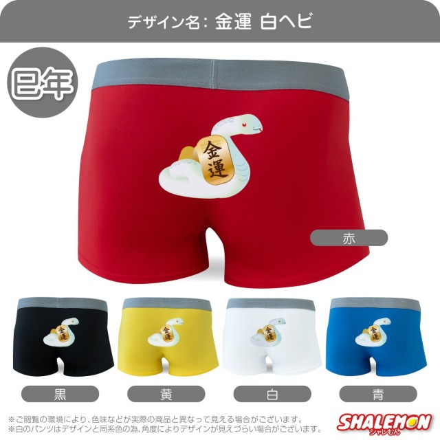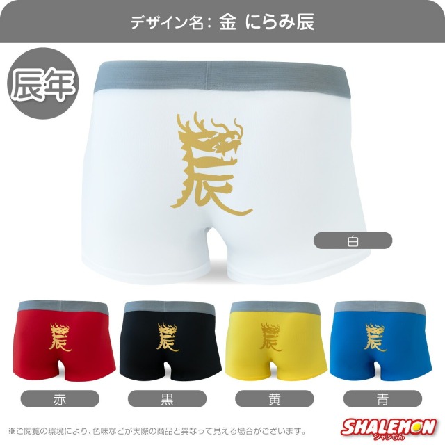 お好きな干支の柄が選べるボクサーパンツです。 ドライ素材で通気性の良いサラサラ感のあるパンツです。 好きなカラー、デザインをお選びいただけます。 【サイズ】 ・男女共用/S、M、L、XL、XXL(3L) 【カラー】 ・赤、黒、黄、白、青 ※プリントは背面のみ、前面は無地になります。 【ご注意】 ※お使いのモニター設定、お部屋の照明等により実際の商品と色味が異なる場合がございます。 ※ボクサーパンツのサイズによりプリントの大きさやバランスが異なる場合がございます。 ※商品のデザイン、仕様、価格は予告なく変更する場合がございます。