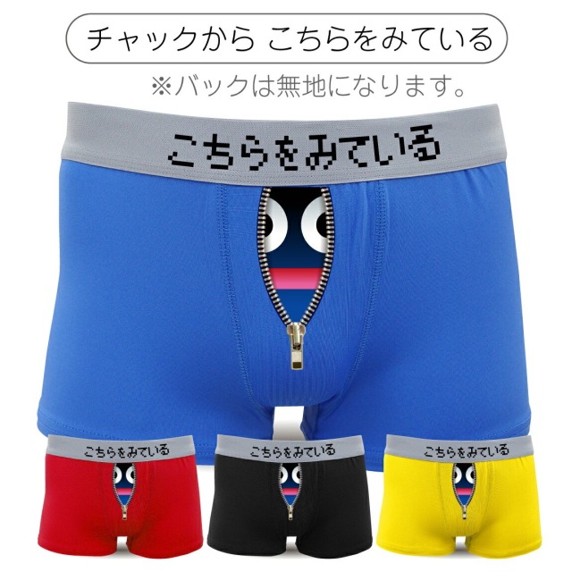 商品名:選べる3デザインおもしろボクサーパンツ ■3つのデザインからお好きなものをお選びください。 ・チャックから こちらをみている ・にこにこメタリック ・まものフェイス ■パンツの色が選べます。 ・青ドライ ・黒ドライ ・黄ドライ ・赤ドライ ■サイズは5サイズ【S・M・L・XL・XXL】 からお選びいただけます。 ※男女兼用(前閉じタイプ)です。 ※女性はSサイズが一般的です