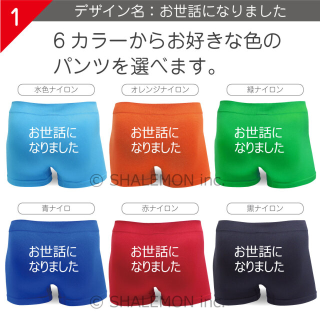 | 製品名: | 送別会 プレゼント メンズ ボクサーパンツ【選べる6色・6メッセージ】【ナイロン】男性下着 挨拶 幹事 景品 |