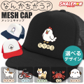 \なんかちがう?シリーズ/ 大人気のデザインからメッシュキャップが登場★ ■サイズについて 男女兼用フリーサイズ(頭囲56-60cm) キャップ後部の調節ベルトでサイズ調節できます。 ■13種類のデザインからお選びいただけます。 ご注文時にお間違いのないよう選択してご購入下さい。 とりから ライオン オオカミ パン だいふく アザラシ えのき ぱいなっぷる ベンシ とかげ りんご サメ えび