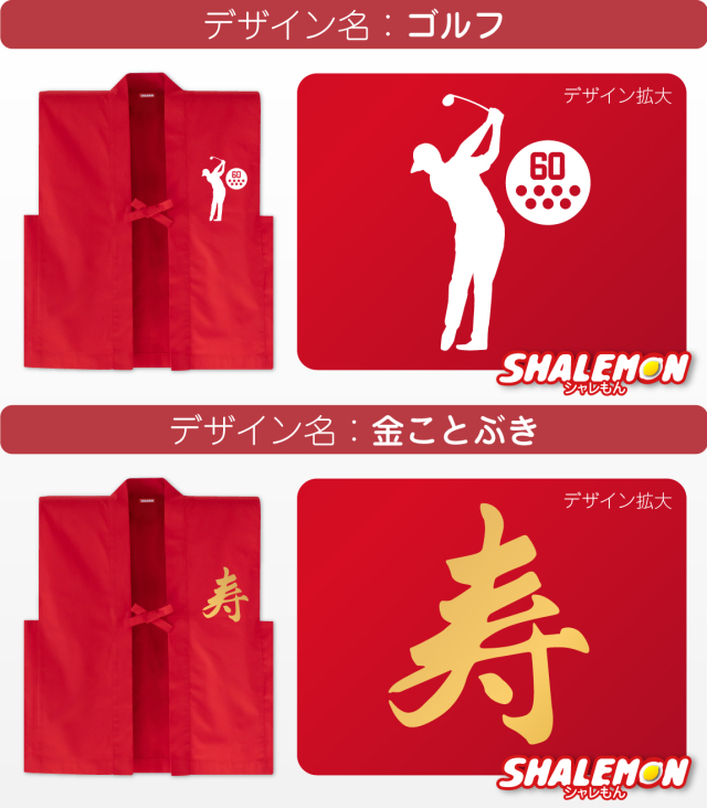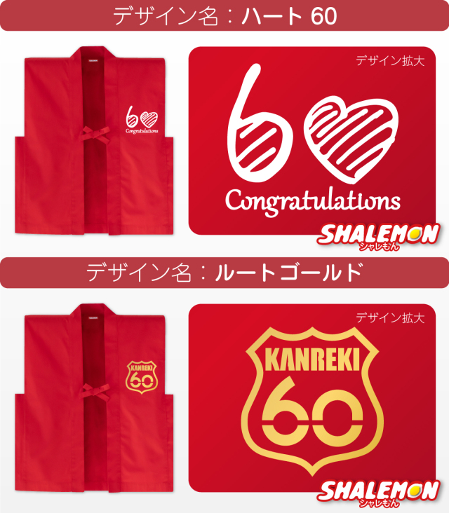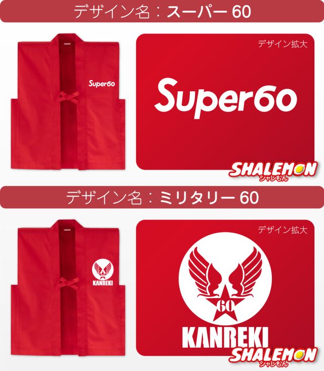 赤いちゃんちゃんこに還暦用デザインをプリント。