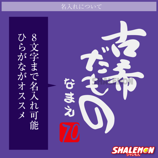70とデザインされた落款プリントの上に、お名前を名入れします!!