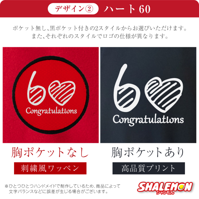 人気の還暦デザインが選べる! シャレもんオリジナル還暦祝い用フリースです。 高品質でしっかりとした厚手生地の赤フリースジャケットです。 同窓会の記念品にもオススメ! ■選べるスタイル■ ・胸ポケットつき ・胸ポケットなし ■選べる包装■ 3種からお選びいただけます。用途に合わせお選びください。 ・通常包装 ・ラッピング資材同梱 ・専用ギフトボックス包装 【ご注意】 ・専用ギフトボックスに他の商品を同梱することはできません。 ・他商品との「まとめてラッピング」はいたしかねます。 ・お使いのモニター設定、お部屋の照明等により実際の商品と色味が異なる場合がございます。 ・商品のデザイン、仕様、価格は予告なく変更する場合がございます。 他にも還暦商品が数十種ありますので、当店シャレもんの還暦コーナーをご覧ください。 きっと、笑顔になる還暦祝いはシャレもん!!