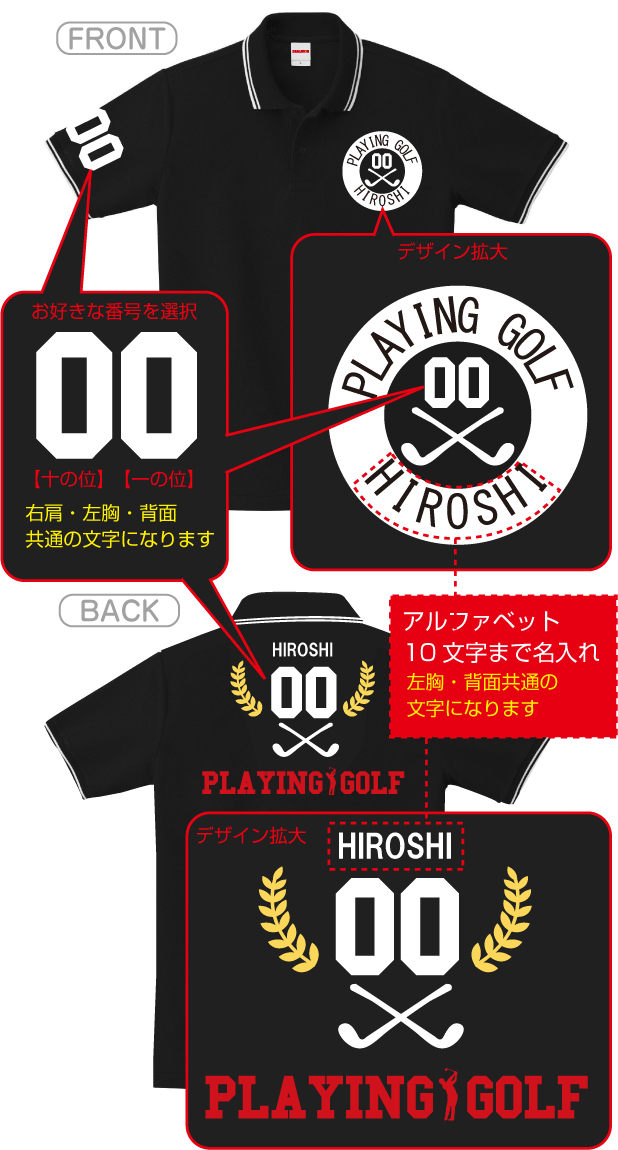 左胸・背面にはお好きなアルファベット10文字まで名入れします。
