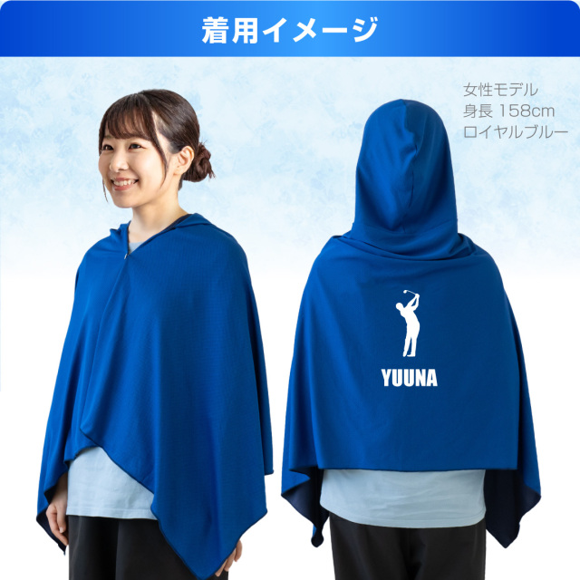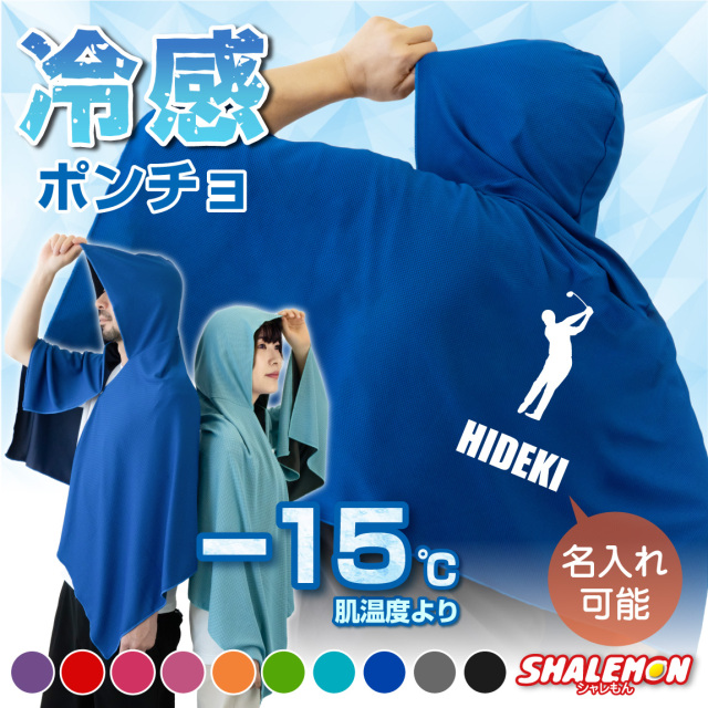 名入れができるフード付き冷感ポンチョは、ひんやり冷却機能とUV対策を兼ね備えた優れモノ。