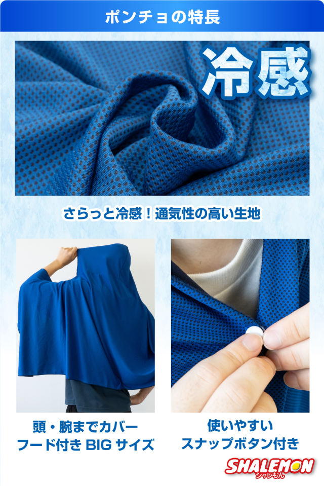 熱中症対策・紫外線対策にもおすすめの冷感ポンチョです。