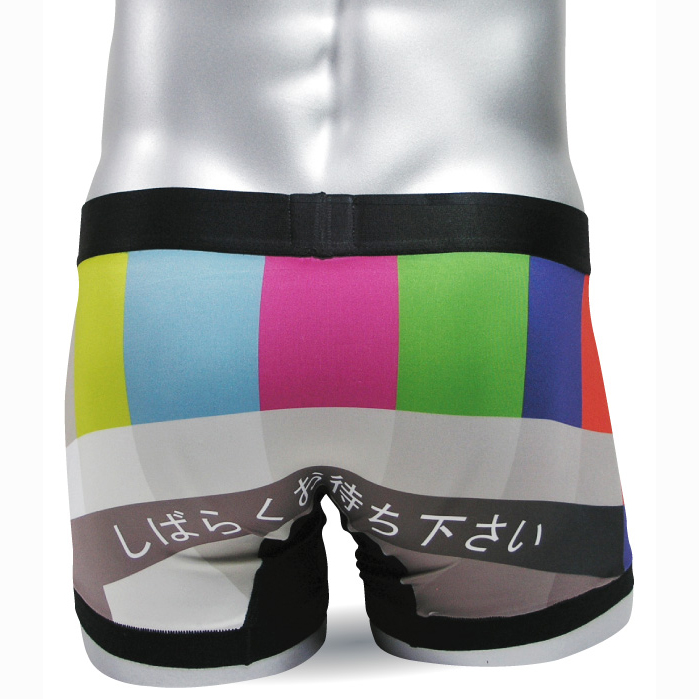 彼女にちょっと待っててほしい時、このパンツさえあれば大丈夫(笑)最近あまり見なくなりましたが、テレビ局のトラブル時に表示される、アレですwフロントはテレビ画面の砂嵐、ヒップにはしばらくおまちくださいの文字がデザインされています。国内プリント生産で少量生産のため、無くなり次第販売終了もしくは再生産までお待ちいただきます。クスっと笑った時がチャンスです。どんなに洗濯しても色落ちしないタフなプリントと履き心地最上級のボクサーパンツはプレゼントにピッタリ!