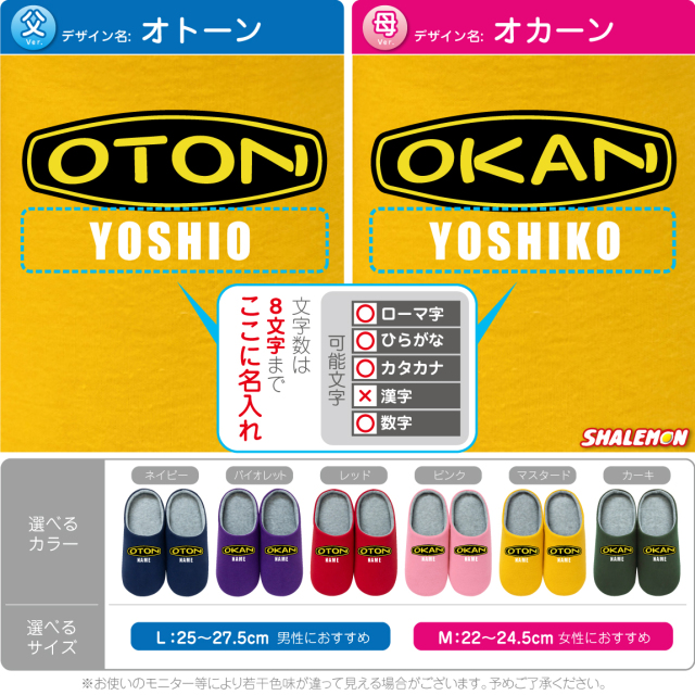 【選べる 母 父デザイン 名入れ ペアスリッパ】