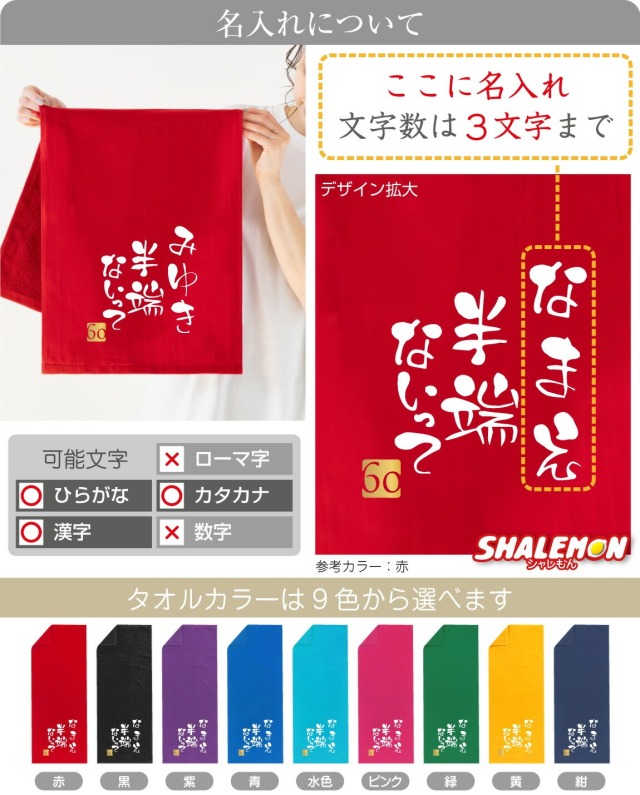 書体は筆文字となります。文字数は3文字(ひらがながオススメ!)まで名入れいたします。