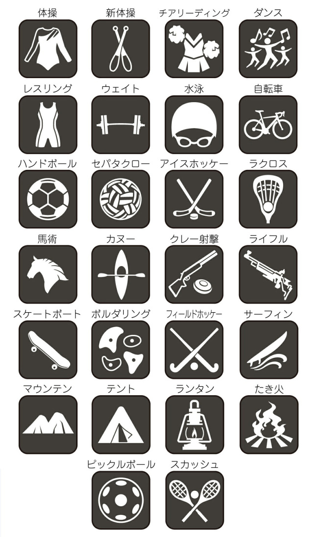 ■スポーツマーク(ゴルフ、野球、サッカー、テニス、卓球、ラグビー、バレーボール、バスケット、ハンドボール、バドミントン、マラソン、新体操、水泳、陸上、空手 他)は選択肢よりお選びください。