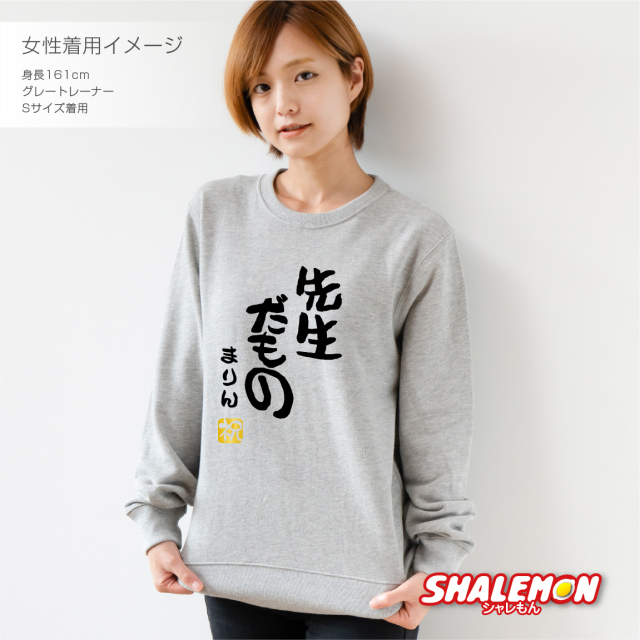 トレーナーカラーは4色から選べます! 元祖!だものシリーズでおなじみの“シャレもん”からついに、完全オリジナルで好きな文字がプリントできるようになりました! 子供用・メンズ・レディースサイズがございますので、ご家族でお揃いもオススメ! ■3か所をお客様にてお好みに制作。 ・○○だもの、○○部分にお好きな文字をプリントできます。 ※特殊な文字や記号などはプリントできません。 ※○○部分への名入れ文字数が1文字の場合【だもの】部分を含め、1列での製作となります。 ・なまえの部分に8文字(シャレもんオリジナル書体)までプリントできます。 ・金印の部分をお選びいただけます。 好きな金印を項目選択から選んでカートに入れてください。 誕生日 プレゼント クリスマス バレンタイン 父の日 母の日 敬老の日 ハロウィン 忘年会 新年会 送別会 贈り物 結婚式 二次会 景品 ギフト としても多くのお客様よりご好評いただいております!
