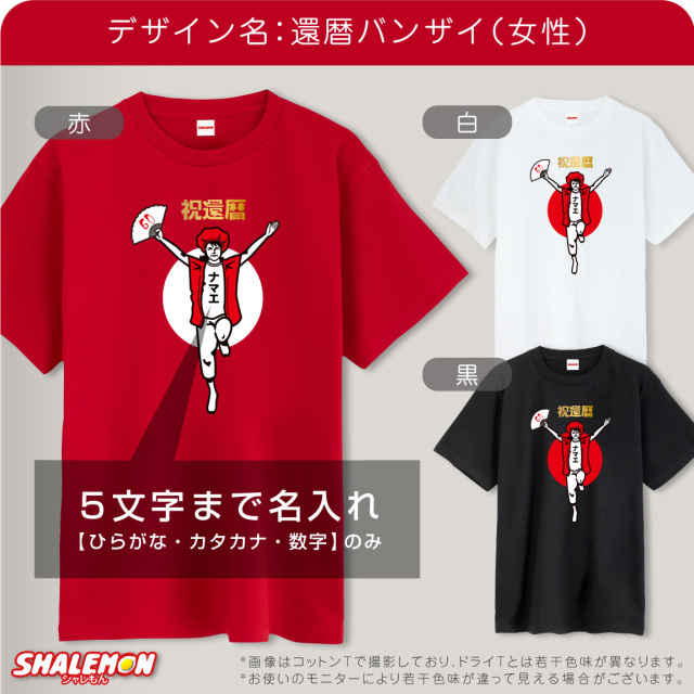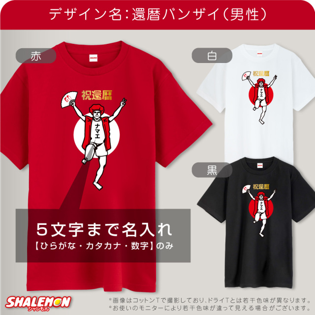 デザインで選ぶ→だものシリーズおもしろゲーム好き猫・犬・ペット浮気防止スポーツ系名入れ可能お祝いで選ぶ→季節のイベント還暦祝い結婚祝い出産祝い長寿祝い応援・祈願誕生日祝い アイテムで選ぶ Tシャツ パンツ タオル エプロン ふんどし ポロ 犬服 帽子 カップ バッグ お酒 トレーナー シャレもんトップページ 名入れ 商品 色で選ぶ赤・レッド 素材で選ぶコットン・綿 おもしろ 還暦祝い(60歳)Tシャツ 素材で選ぶポリエステル 還暦 名入れ 還暦祝い tシャツ ( 還暦 バンザイ )( 選べる 男性 女性 デザイン )( 選べるカラー) 還暦Tシャツ 長袖 おもしろ グッズ 赤い プレゼント 還暦祝い ちゃんちゃんこ おしゃれ 赤いちゃんちゃんこ しゃれもん サプライズ 価格: ¥2,970 (税込) [ポイント還元 29ポイント~] 販売期間: デザインを選択: 選択してください 【 還暦バンザイ 男性 】 【 還暦バンザイ 女性 】 名入れ: 選択してください する しない※記入欄には"不要"と入力 名入れ文字(5文字まで): 【名入れについて】: 著作権・肖像権・商標権を侵害する内容や公序良俗に反する内容の名入れはお断りさせていただきます。万一依頼いただきました内容が著作権・肖像権・商標権その他の権利に抵触しても弊社では一切の責任を負いかねます。 選択してください 了承する 【商品画像について】: 商品画像の色味はお客様のご覧になる環境によって実物と異なる場合がございます。また商品の生産・入荷時期により色味や仕様が異なる場合がございますのであらかじめご了承ください。 選択してください 了承する 数量: 枚 サイズカラー在庫購入S赤【コットン】T(半袖)○ 赤【ドライシルキー】T(半袖)○ 黒【コットン】T(半袖)○ 黒【ドライシルキー】T(半袖)○ 白【コットン】T(半袖)○ 白【ドライシルキー】T(半袖)○ M赤【コットン】T(半袖)○ 赤【ドライシルキー】T(半袖)○ 黒【コットン】T(半袖)○ 黒【ドライシルキー】T(半袖)○ 白【コットン】T(半袖)○ 白【ドライシルキー】T(半袖)○ L赤【コットン】T(半袖)○ 赤【ドライシルキー】T(半袖)○ 黒【コットン】T(半袖)○ 黒【ドライシルキー】T(半袖)○ 白【コットン】T(半袖)○ 白【ドライシルキー】T(半袖)○ XL赤【コットン】T(半袖)○ 赤【ドライシルキー】T(半袖)○ 黒【コットン】T(半袖)○ 黒【ドライシルキー】T(半袖)○ 白【コットン】T(半袖)○ 白【ドライシルキー】T(半袖)○ サイズカラー在庫購入S赤【コットン】T(半袖)○ 赤【ドライシルキー】T(半袖)○ 黒【コットン】T(半袖)○ 黒【ドライシルキー】T(半袖)○ 白【コットン】T(半袖)○ 白【ドライシルキー】T(半袖)○ M赤【コットン】T(半袖)○ 赤【ドライシルキー】T(半袖)○ 黒【コットン】T(半袖)○ 黒【ドライシルキー】T(半袖)○ 白【コットン】T(半袖)○ 白【ドライシルキー】T(半袖)○ L赤【コットン】T(半袖)○ 赤【ドライシルキー】T(半袖)○ 黒【コットン】T(半袖)○ 黒【ドライシルキー】T(半袖)○ 白【コットン】T(半袖)○ 白【ドライシルキー】T(半袖)○ XL赤【コットン】T(半袖)○ 赤【ドライシルキー】T(半袖)○ 黒【コットン】T(半袖)○ 黒【ドライシルキー】T(半袖)○ 白【コットン】T(半袖)○ 白【ドライシルキー】T(半袖)○ 返品についての詳細はこちら レビューはありません 還暦ちゃんちゃんこと頭巾を身に着けた面白デザインのTシャツです。 見れば見るほど味のあるデザインです。還暦祝いで笑いの好きな方への贈り物をお探しでしたら超おすすめ! お父さんやお母さんのお名前を入れてプレゼントしたら、必ずや爆笑!? 同窓会の記念品にもオススメ! 名入れ文字の書体はゴシック体で黒色となります。文字数は5文字まで(カタカナがおすすめ!)名入れいたします。 カラーは3色からお選びいただけます。 きっと、笑顔になる還暦祝いはシャレもん!! 関連商品 還暦祝い 名入れ ( 腹巻 はらまき )( かんれきだもの )( 金落款60 ) 選べるカラー 男女兼用 防寒インナー 父 母 還暦 赤い 男性 女性 ちゃんちゃんこ の代わり 誕生日 60歳 防寒 冷え性 お腹 下着 縁起物 プレゼント 還暦だもの しゃれもん サプライズ(PDT) ¥2,970(税込) 古希祝い 名入れ 腹巻 ( はらまき )( 古希だもの )( 70 ) 日本製 防寒インナー 父 母 古希 紫 男性 女性 ちゃんちゃんこ の代わり 誕生日 70歳 フリーサイズ パープル お祝 長寿 冷え性 ダイエット 寒さ対策 冷え防止 プレゼント こきだもの しゃれもん(PDT) ¥2,970(税込) 古希 お祝い プレゼント 母 名入れ 古希祝い ( エプロン )( 古希だもの )( 赤落款70 ) シルキーエプロン ギフト ちゃんちゃんこ の代わり プレゼントこきいわい koki しゃれもん ¥2,970(税込) 古希 お祝い 父 母 紫 プレゼント ( 選べる古希デザイン ちゃんちゃんこ )( 扇子 )( 頭巾 セット ) 男性 女性 70歳 祝い 誕生日 (A10) ¥3,600(税込) 古希 お祝い 母 名入れ 古希祝い ( ショートエプロン )( 古希だもの )( 70 ) ちゃんちゃんこ の代わり プレゼントこきいわい ワイン ネームインポエム koki しゃれもん(DMT) ¥2,480(税込) バレンタイン パンツ プレゼント おもしろ 