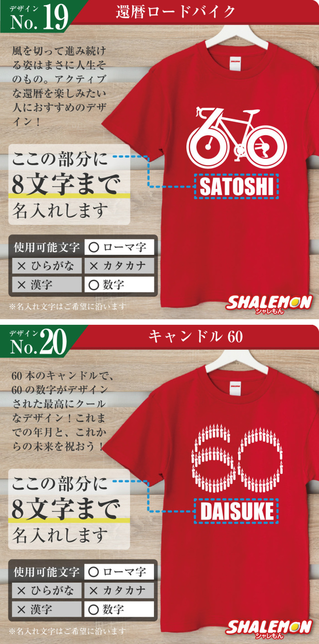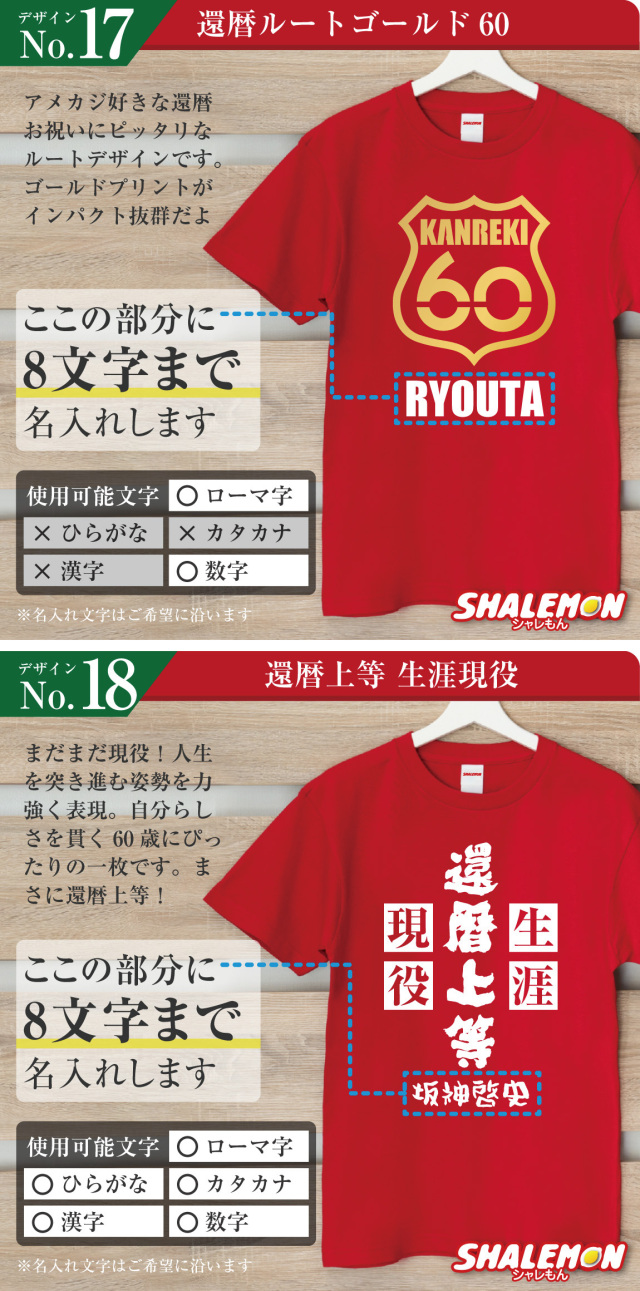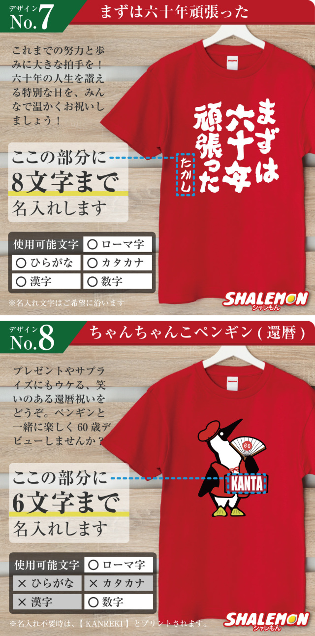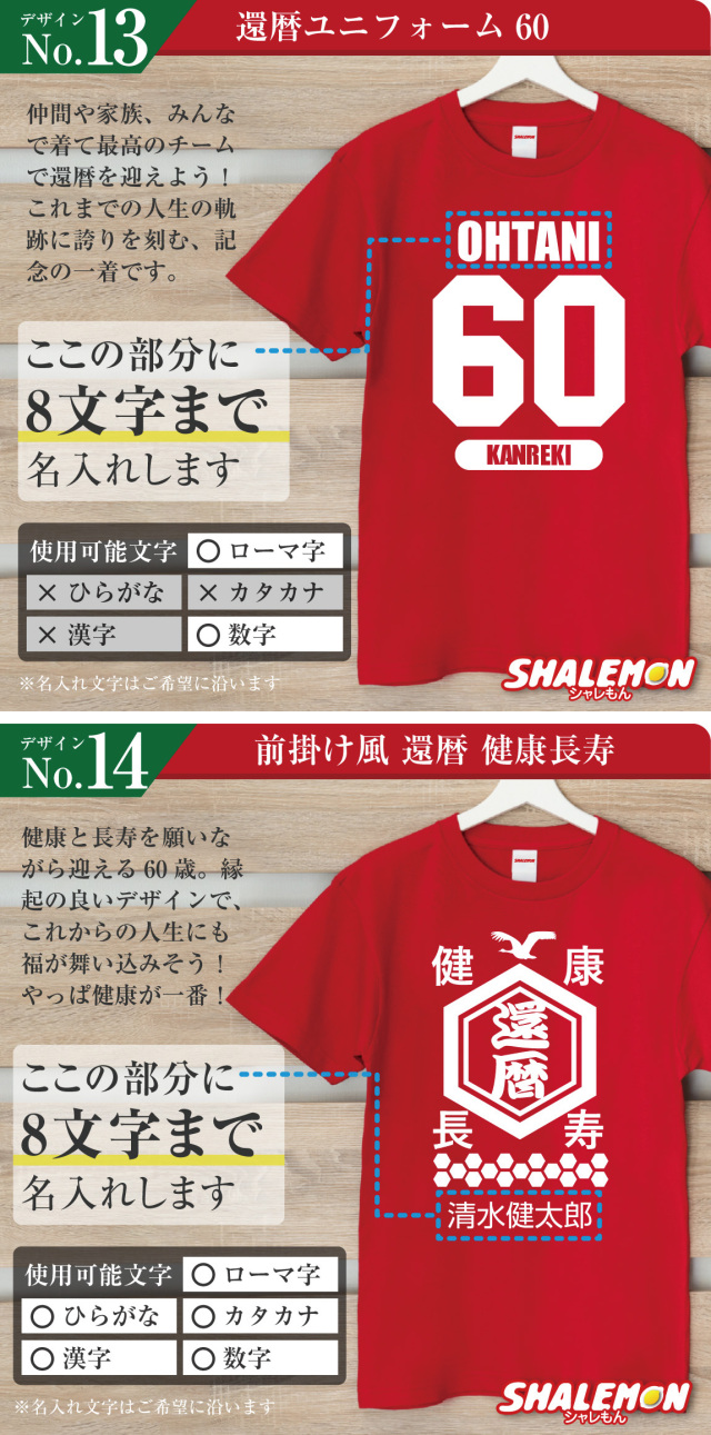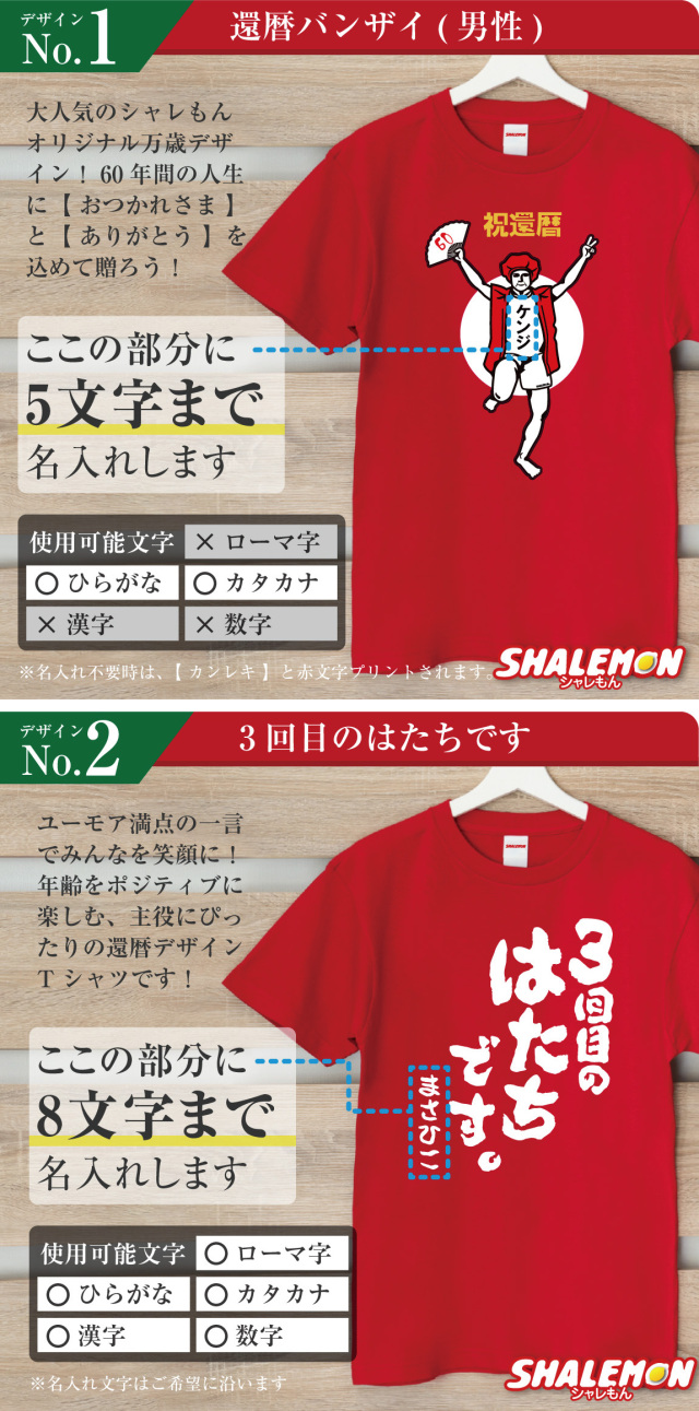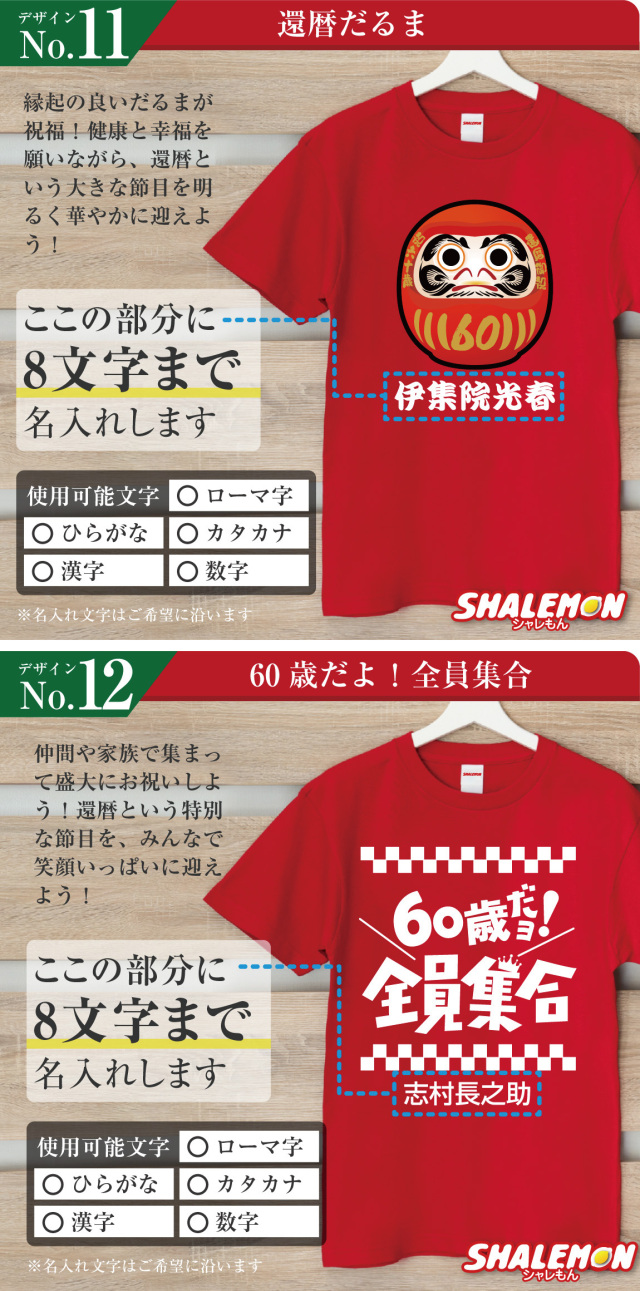 名前入りで「俺が還暦だ!」と堂々アピールできるデザインを集めました!