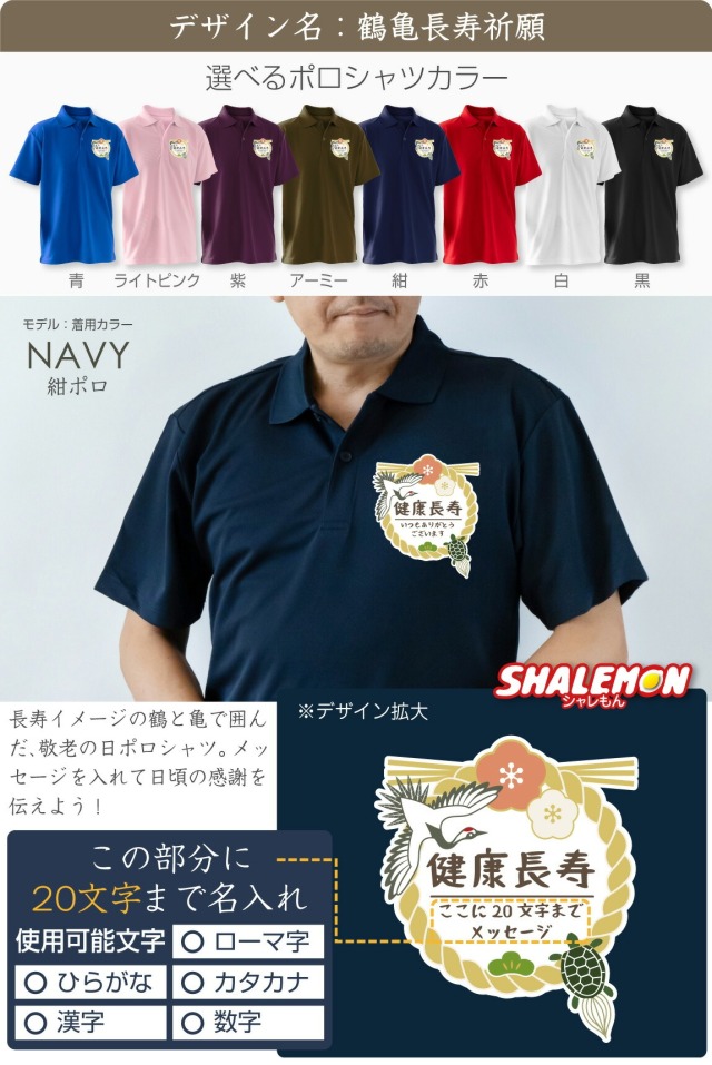 | 製品名: | 敬老の日 プレゼント ( 名入れ ポロシャツ 選べるデザイン 選べる8色 ) |