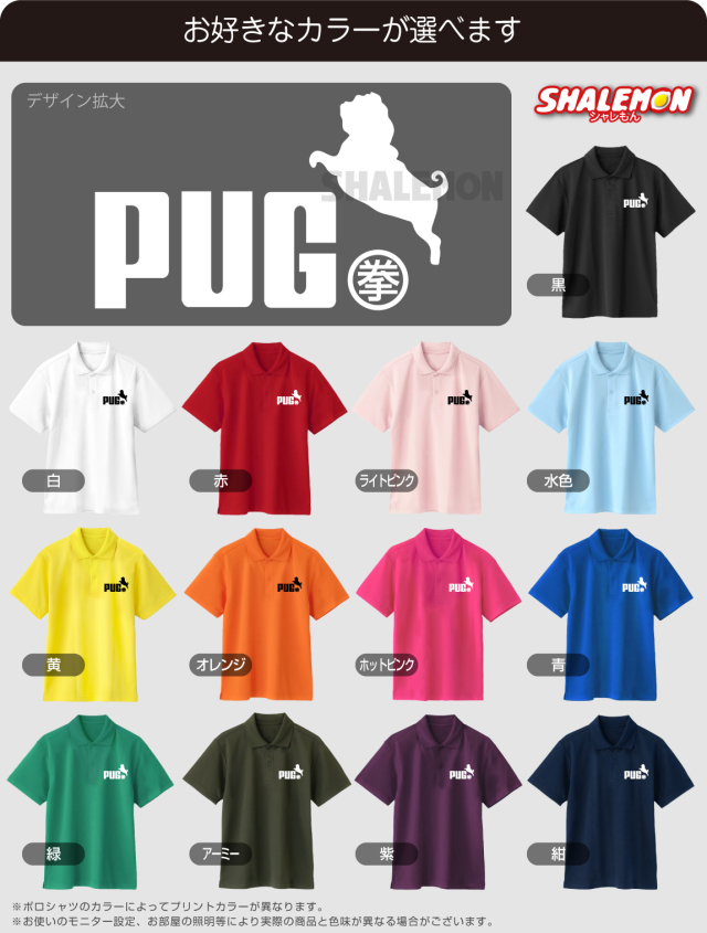 • パグ 犬 おもしろ ポロシャツ ( 選べる13色 パグ ジャンプ ) グッズ ぬいぐるみ メンズ レディース ユニセックス 男性 女性 男女兼用 半袖 ドライ素材 快適 夏服 散歩 (P7)