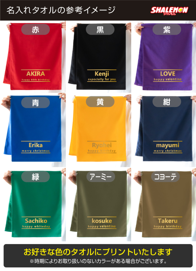名入れ タオル ( 選べるカラー チョコ風 タオル )( サイド ) バレンタイン ホワイトデー 2月14日 ギフト 男性 女性 プレゼント フェイスタオル 誕生日 ギフト 出産祝い おもしろ雑貨 名前入れ ギフト しゃれもん (4BY)