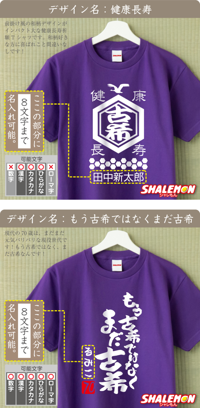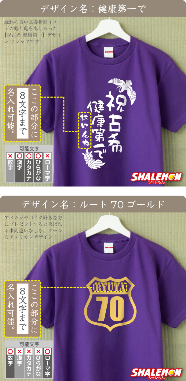 古希祝い 男性 女性 Tシャツ ( 古希 名入れ 選べるデザイン )( 赤落款70 ) メンズ レディース 古稀 もらって 嬉しかった もの 祖父 祖母 じいじ ばあば 敬老の日 紫 ちゃんちゃんこ より ネーム入れ 記念品 SNS 3.5回目 70年 まだ古希 生涯現役 健康第一